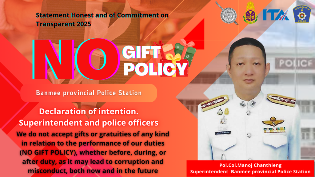 ประกาศสถานีตำรวจภูธรบ้านหมี่ เรื่อง นโยบายต่อต้านการรับสินบน (Anti-Brlbery Police) ประจำปีงบประมาณ พ.ศ. 2568