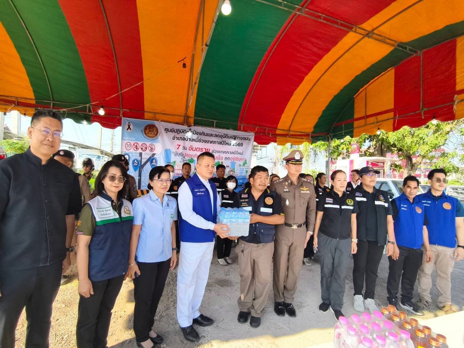 ผกก.สภ.บ้านหมี่ ภ.จว.ลพบุรี ร่วมเปิดศูนย์ปฏิบัติการป้องกันและลดอุบัติเหตุทางถนนช่วงเทศกาลปีใหม่ 2569