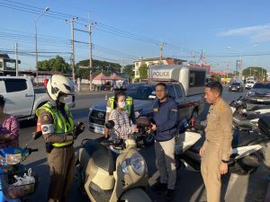 และประชาสัมพันธ์รณรงค์ให้ประชาชนสวมหมวกกันน็อก คาดเข็มขัดนิรภัย ปฏิบัติตามกฎหมายจราจรโดยเคร่งครัด เพื่อลดอุบัติเหตุข้างถนนในช่วงเทศกาลปีใหม่ 2568