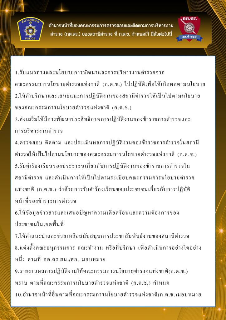 อำนาจหน้าที่ของคณะกรรมการตรวจสอบและติดตามการบริหารงานตำรวจ (กต.ตร.) ของสถานีตำรวจ
